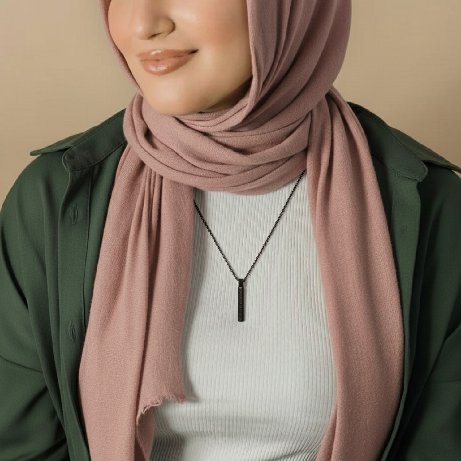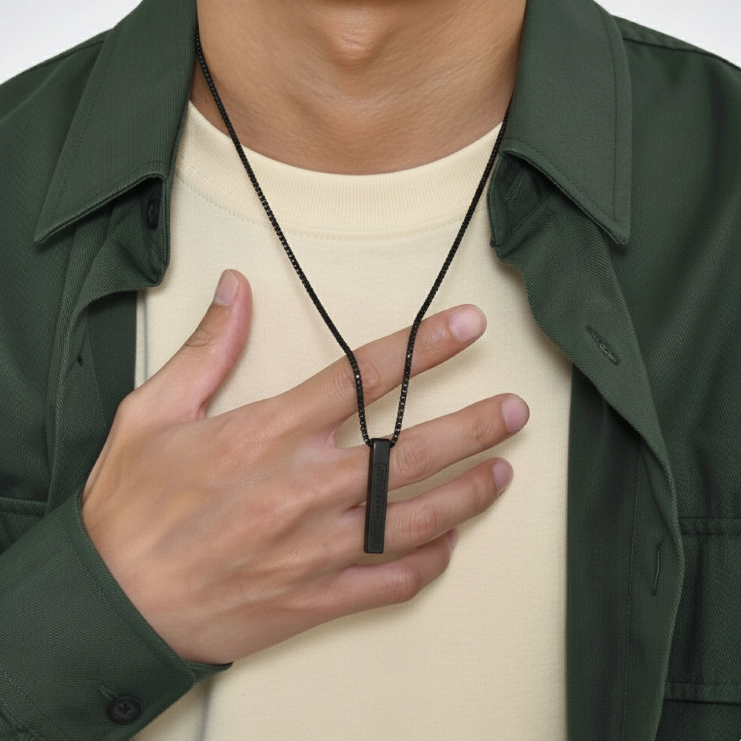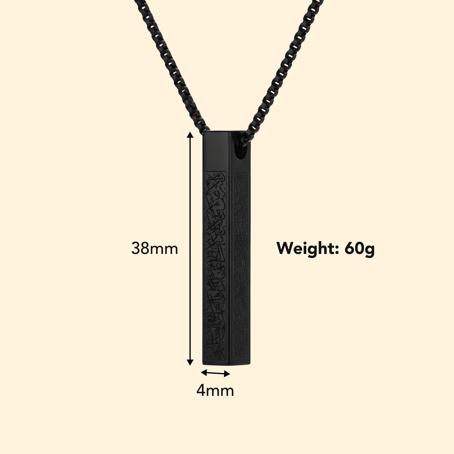 Ayatul Kursi Islamic 3D Column Bar Necklace Black Color
