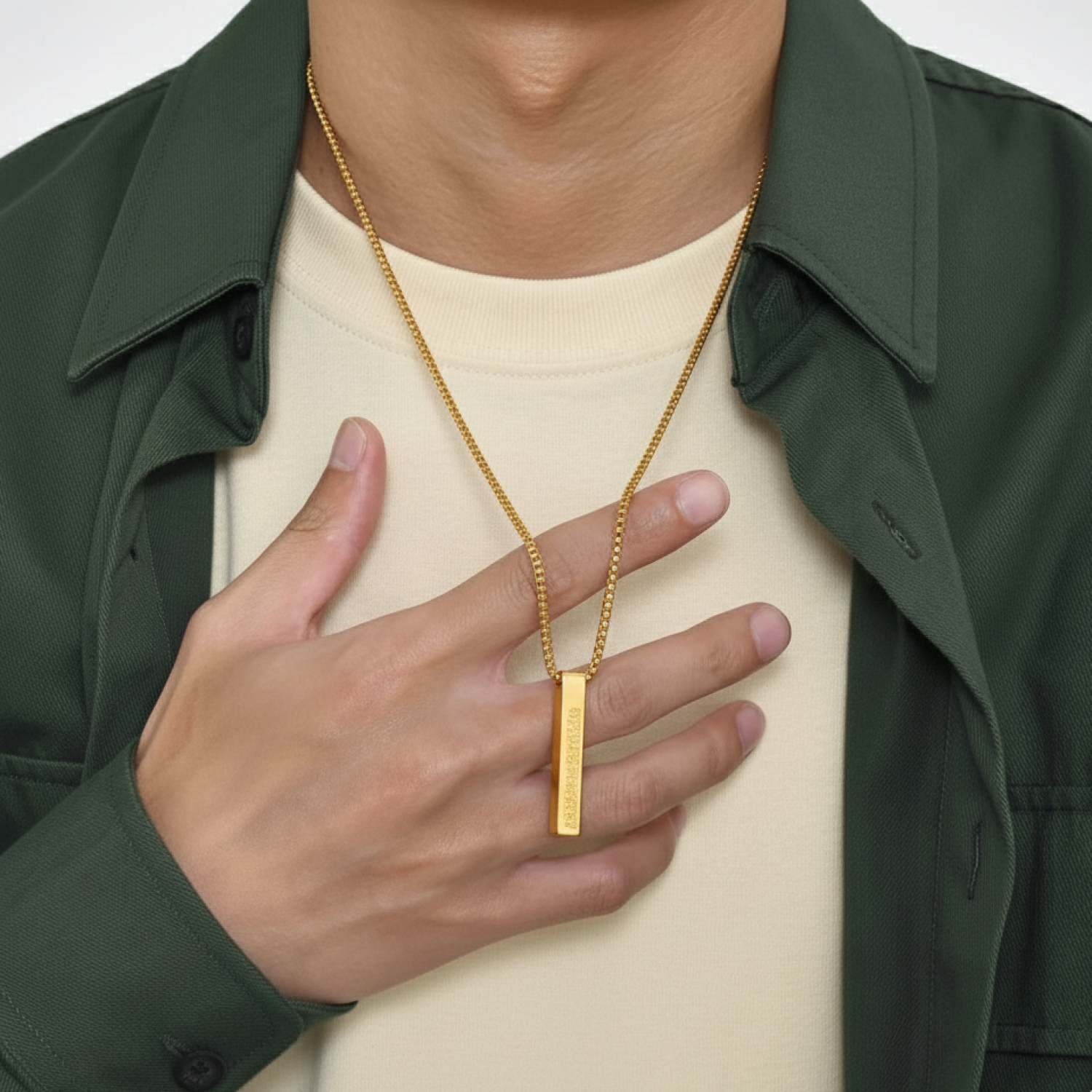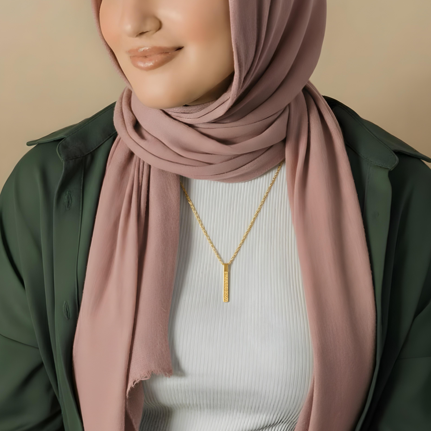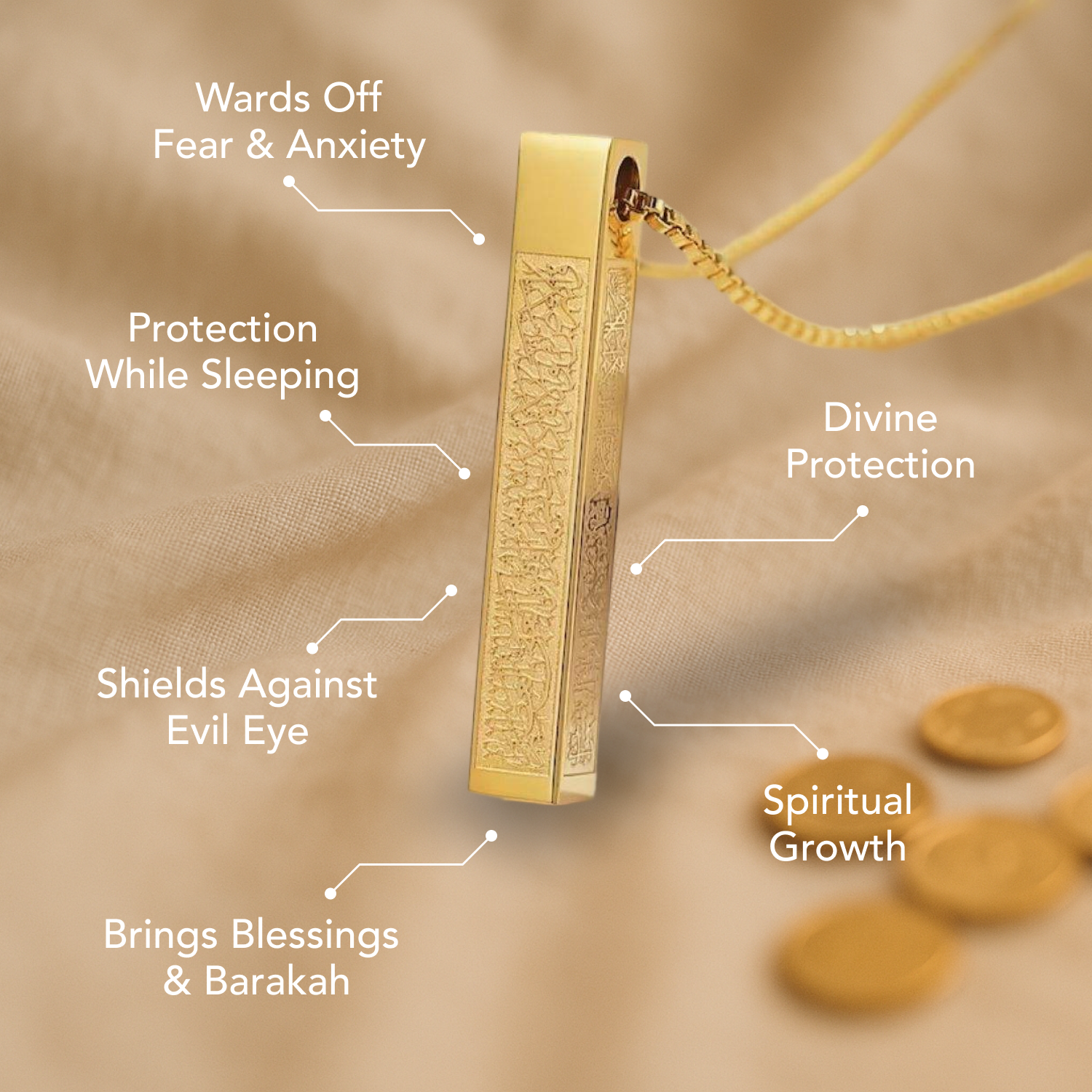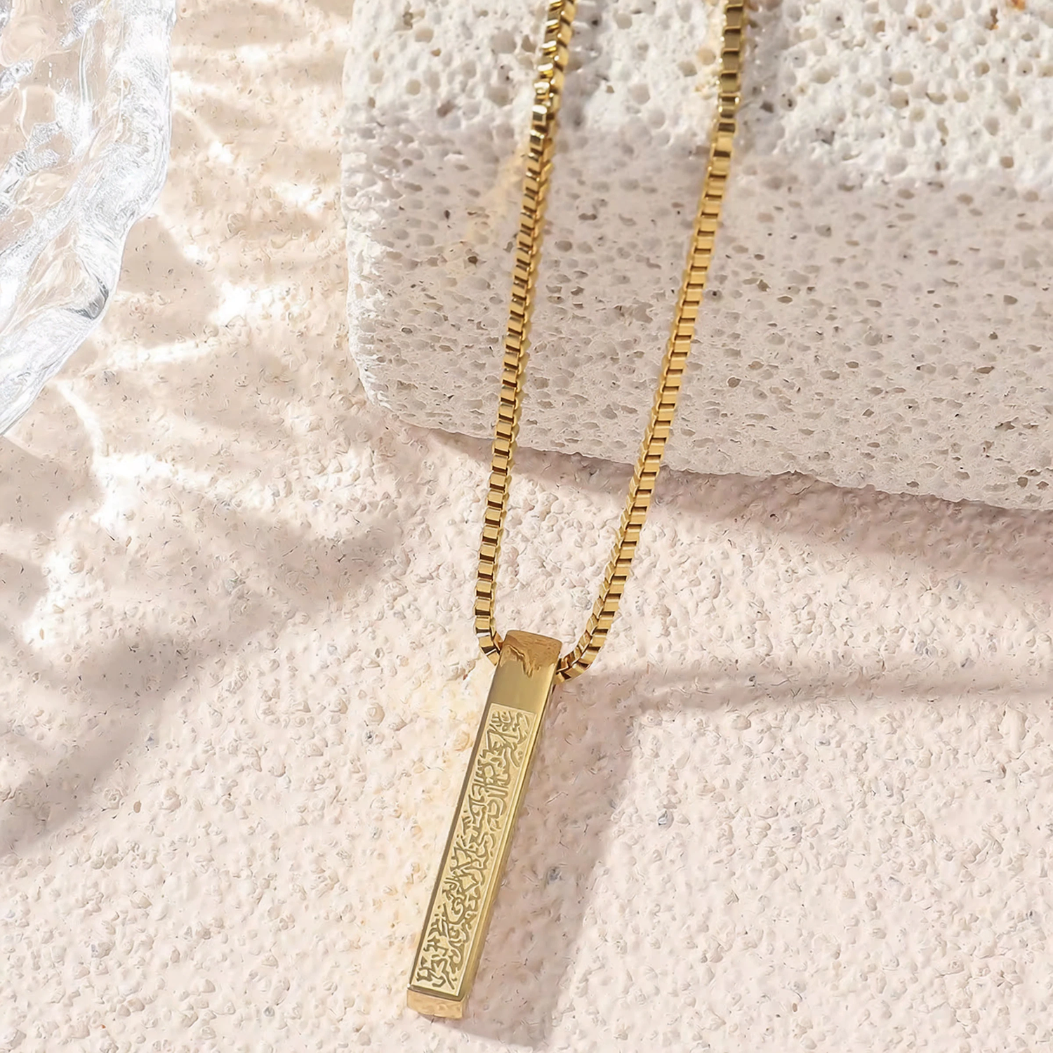 Ayatul Kursi Islamic 3D Column Bar Necklace Gold Plated