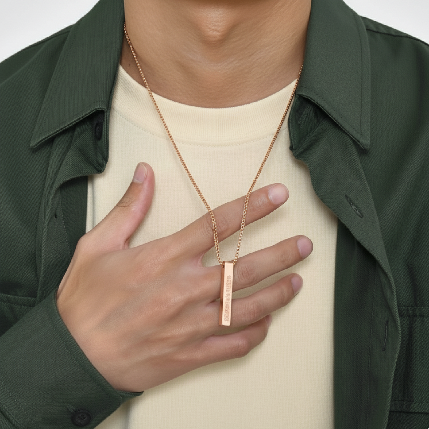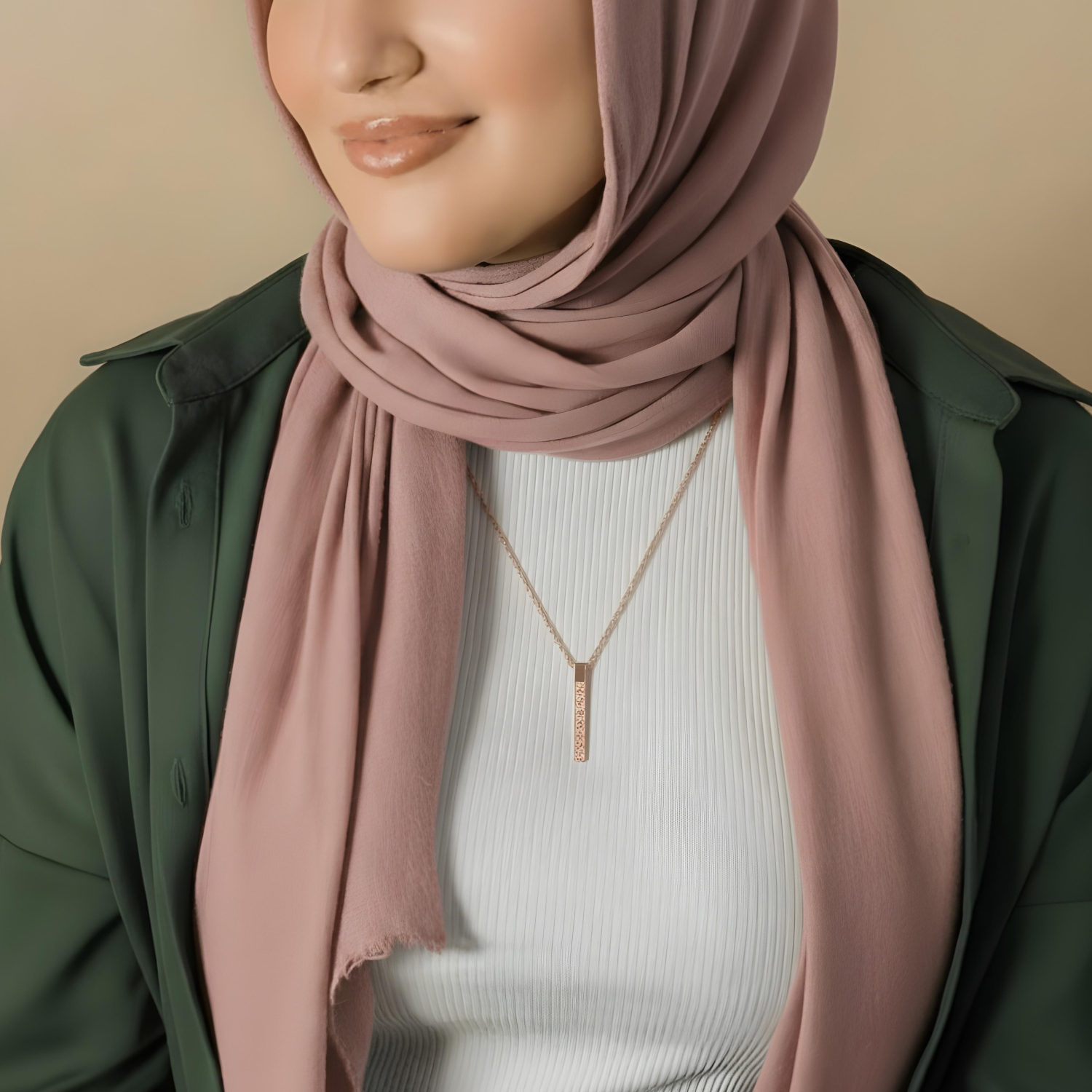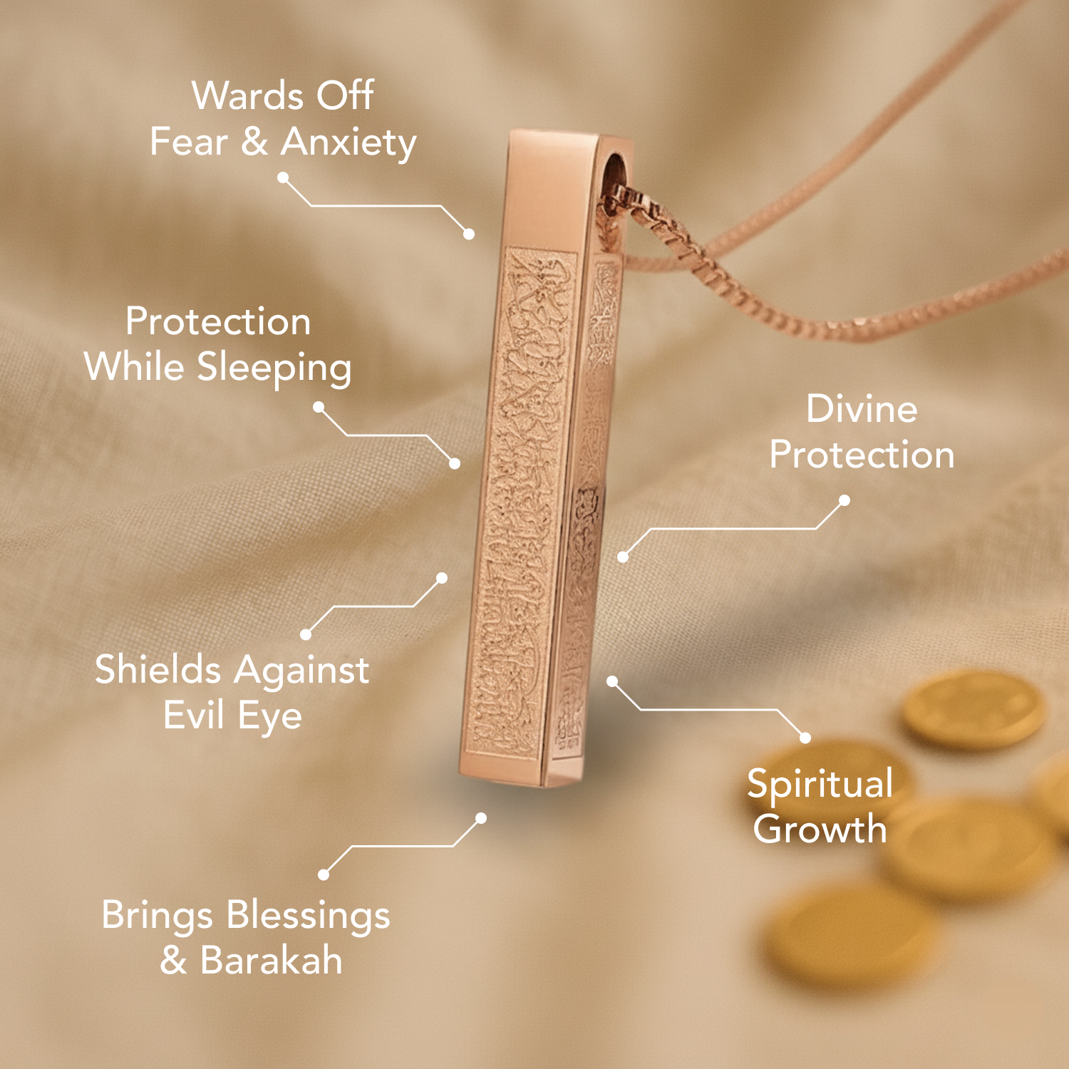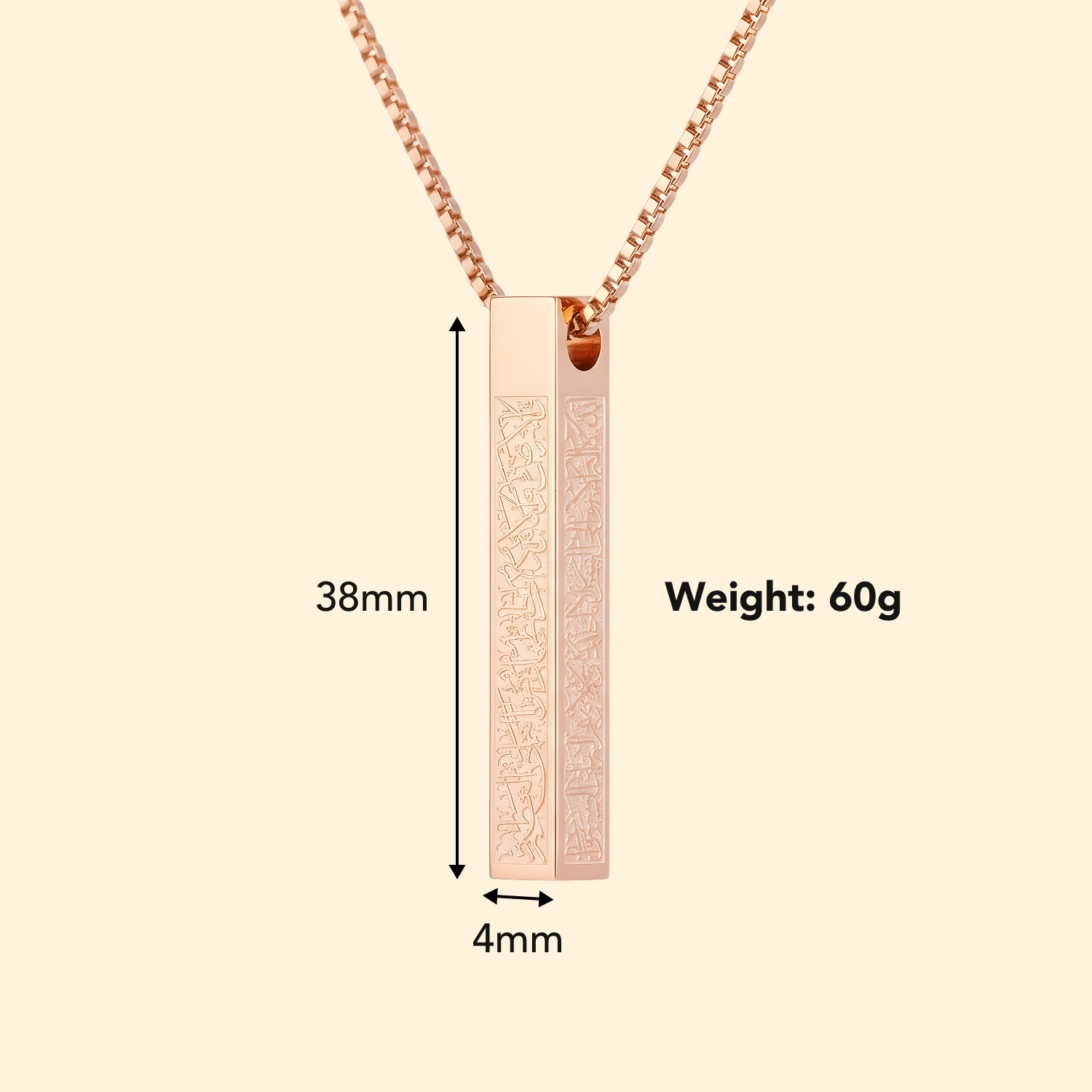 Ayatul Kursi Islamic 3D Column Bar Necklace Rose Gold Plated