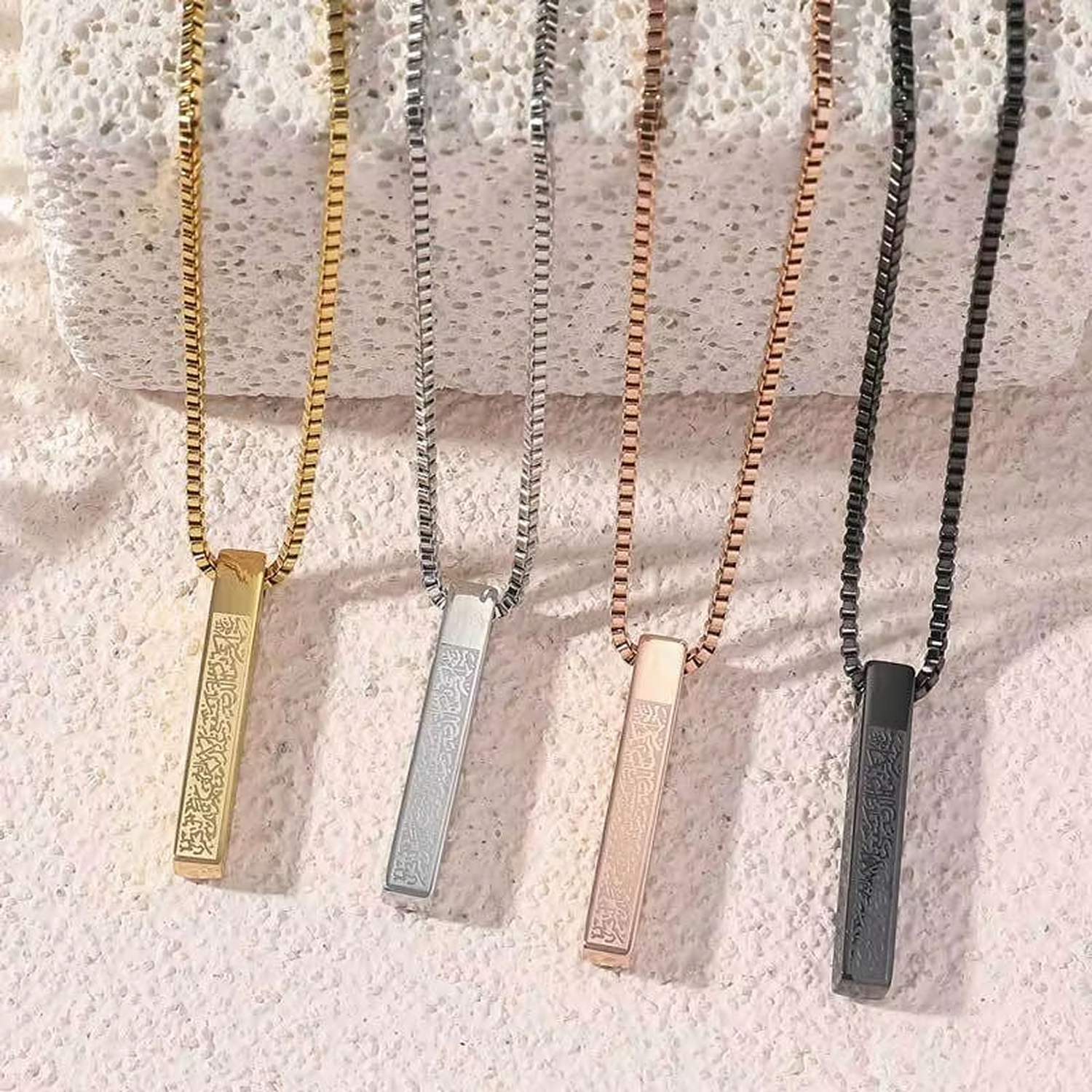 Ayatul Kursi Islamic 3D Column Bar Necklace Gold Plated