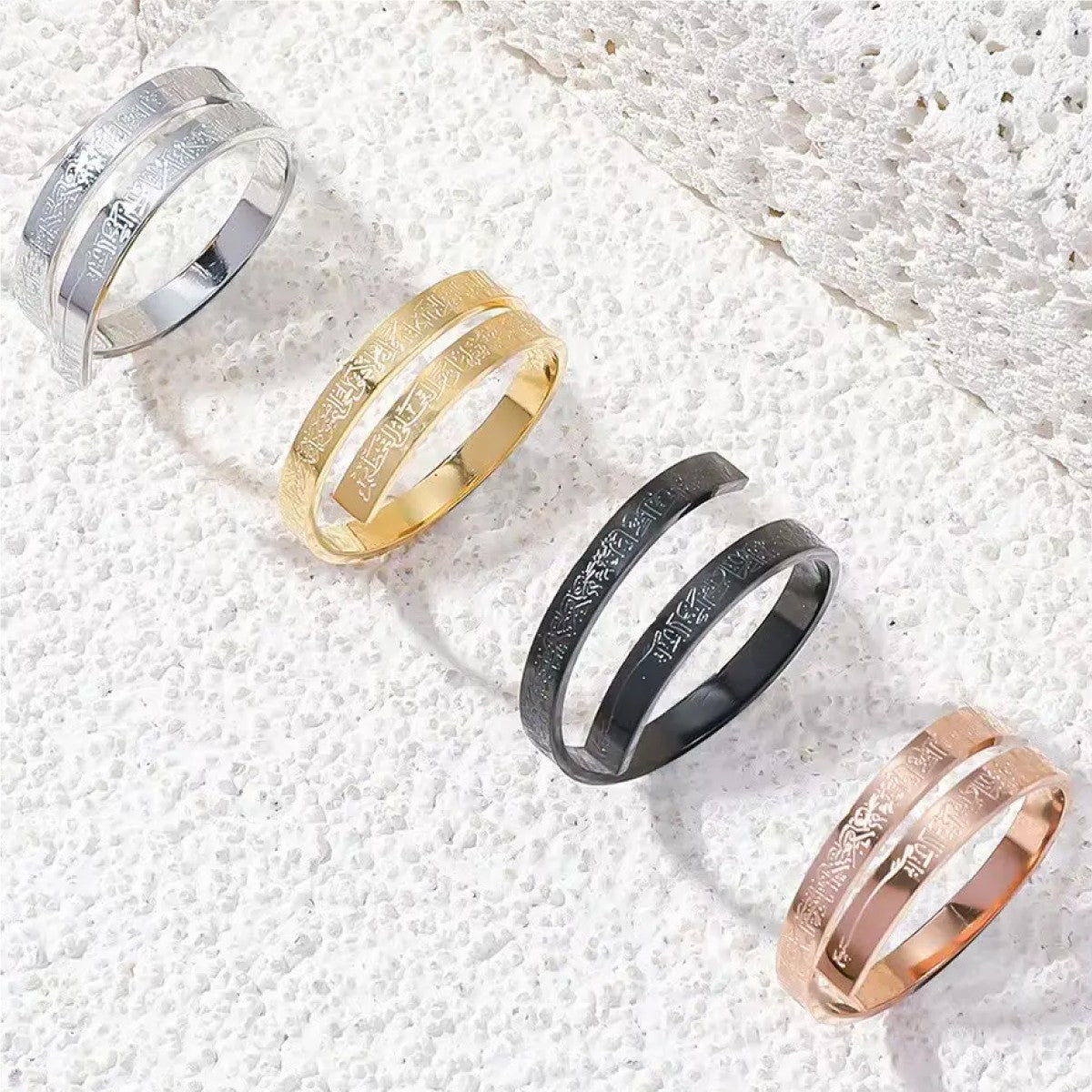 Ayatul Kursi Islamic Spiral Ring Gold Plated